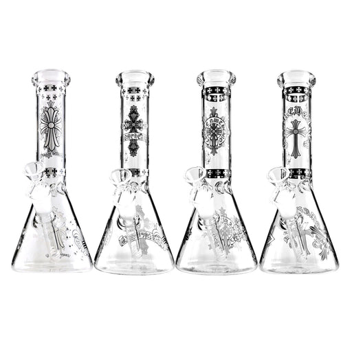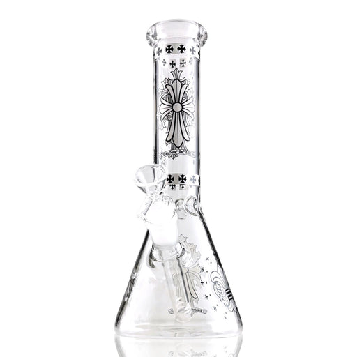 View full detailsThis 10" Gothic Cross Beaker Bong Series combines classic beaker functionality with bold, monochrome artwork inspired by ornate gothic and medieval...