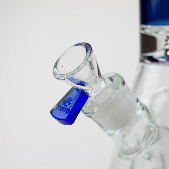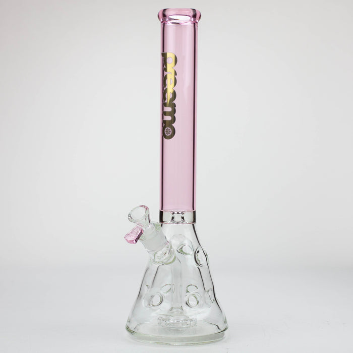 Preemo full beaker featuring a showerhead perc to a Swiss perc. This water pipe has a 9-hole Swiss percolator creating more contact with the surface area between the two layers of glass. The showerhead is large and has loads of slits for full filtration. It comes with a thick herb bowl and many colour options.