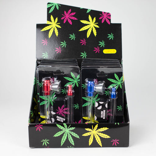 View full details2 in 1 Glass Pipe with Screen Box of 12 pipes Color assorted 4" long Borosilicate Glass Glass bowl