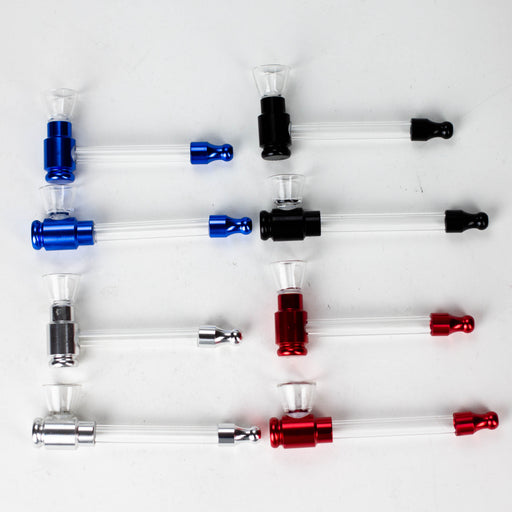 View full detailsGlass tube Tobacco Pipe with screen 2 parts grinder (60*25mm) Glass Pipe (95*26mm) 5pc Metal screen (18mm) 32 pcs per display Color and desig...