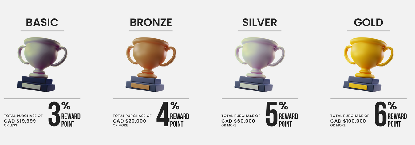 Our Reward Point Program is as simple as it sounds. While shopping at onewholesale.ca you will earn Shopping Points for the money you spent.