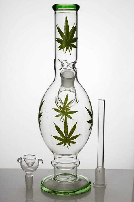 When it comes to maintaining simplicity and compliance to the traditional act of smoking up, the classic beaker water bong ' leaf takes the case. A very simple beaker shaped design or oval shaped design that is reminiscent of the glass bongs of days gone by, the classic beaker water bong celebrates the weed smoker by being decorated by weed leaf designs all over the body to really highlight the purpose of the glass sculpture: The most amazing smoking experience that you will ever have. Go ahead. Get one of these. Take those rips one after the other and enjoy smoking up like you ever have before.