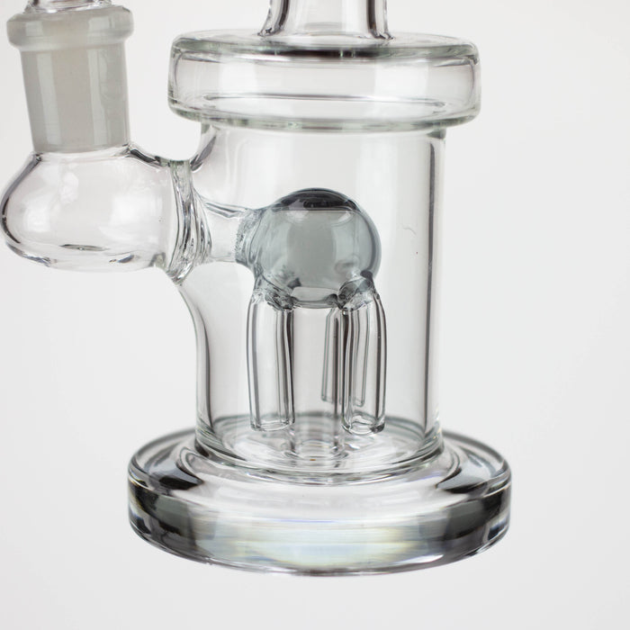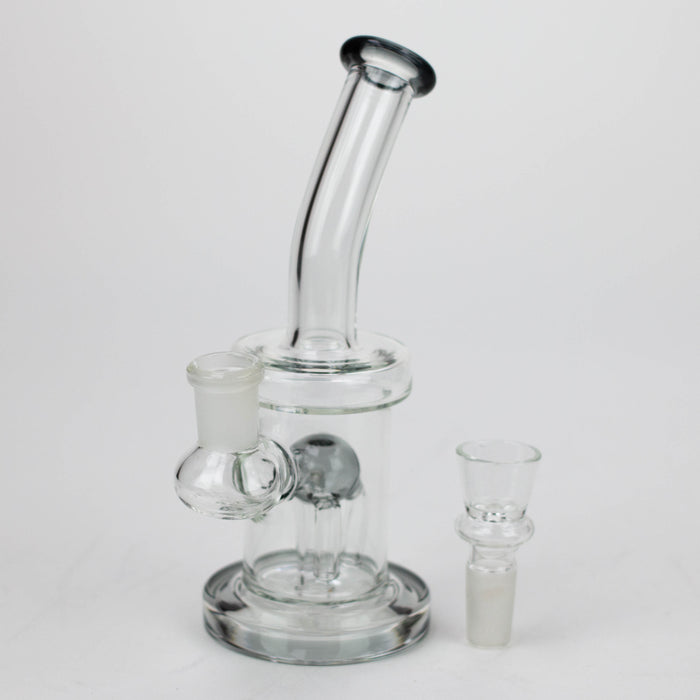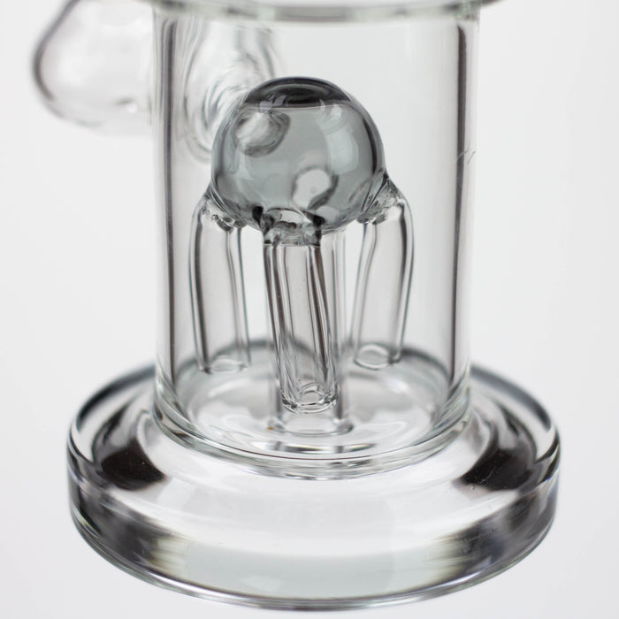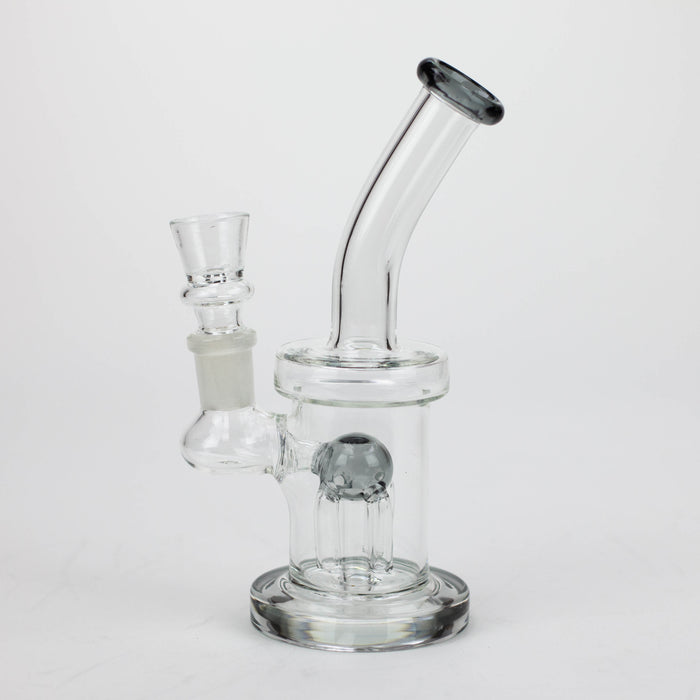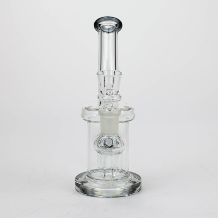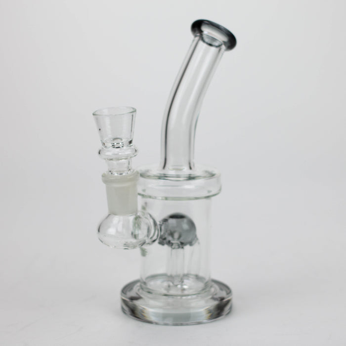 Perfect hits in a convenient size. This is ultimate travel friendly glass piece. A shower head diffuser is encased in a matrix percolator allows the most beautiful explosions. A thick base provides exceptional support. The joint is 14 mm male. The traveler stands 6.5'' inches tall and is an excellent flavor saver.