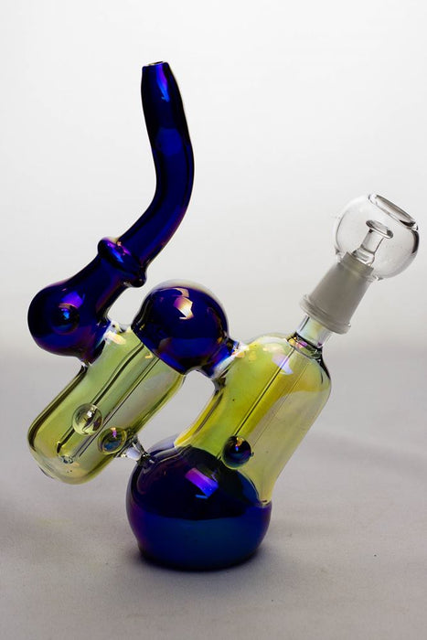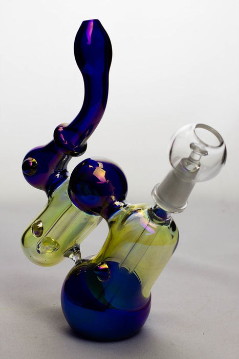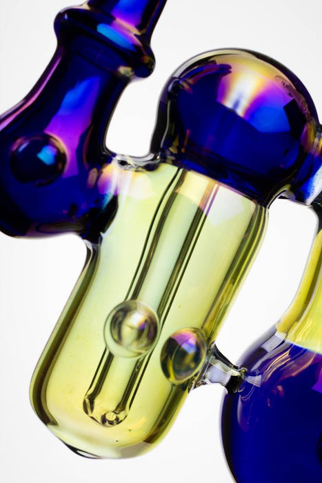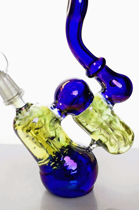 Time is a flat circle and so is a lot of this 2-in-1 dual chamber diffused bubbler. We always love unique takes on bubbler design, such as this. It is always great to see something new. Looks aren't all that this bubbler has to offer it also has a fixed stem diffuser, as well as a double chamber. This unique looking bubbler gives you a smooth smoking experience, every single time.