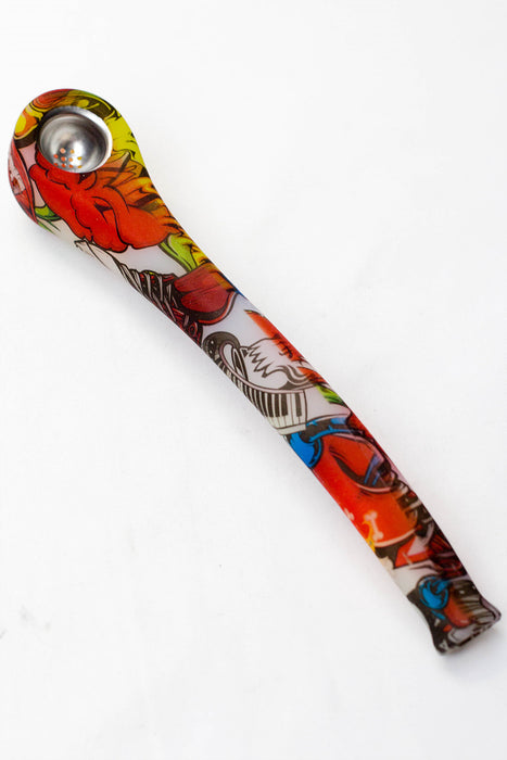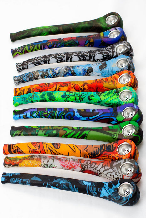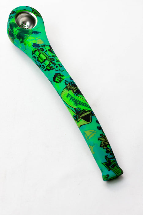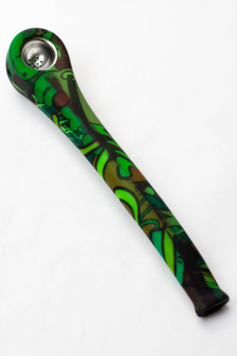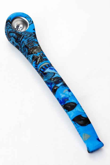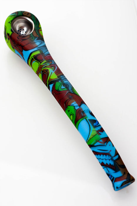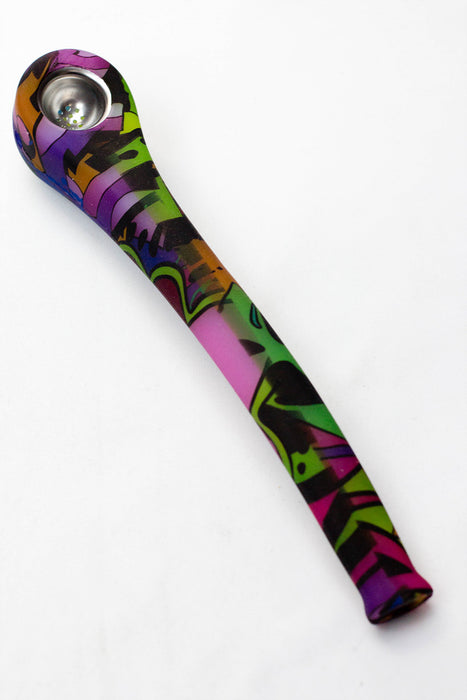 9" Silicone graphic printed hand pipe with metal bowl