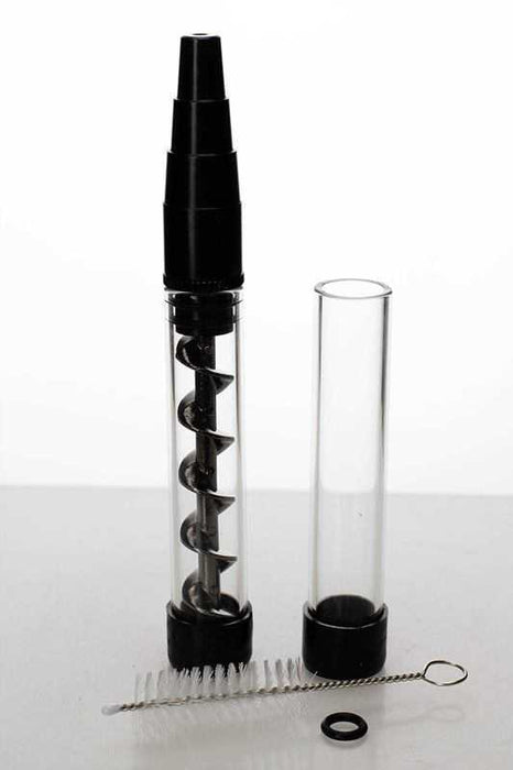 Rolling a blunt will never be the same again. Using the Twisty Glass Blunt, you can always enjoy the clean taste! Easily pack up to 1.5 grams of herbal flower into the glass tube and twist the screw into the tube. Just brush it after usage and light it up over and over again! Safe, Functionally Efficient, Easy to Use and The Best Value.